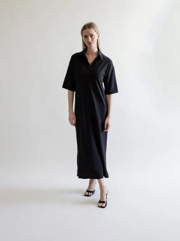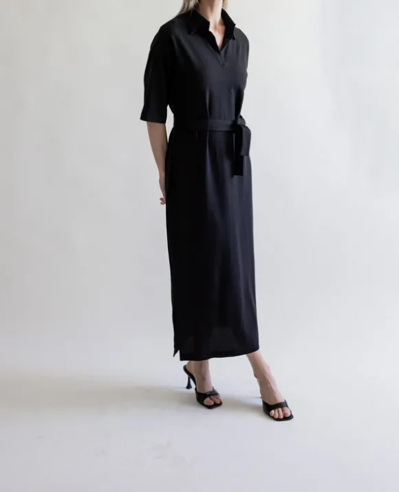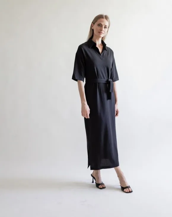 Gauhar Helsingin pehmeästä puuvillasekoitteesta valmistetussa mekossa on mukava istuvuus, yksinkertainen V-kaulus ja pidemmät t-paidan hihat. Mekossa on solmittava irtovyö, jolla voit halutessasi korostaa vyötäröä.