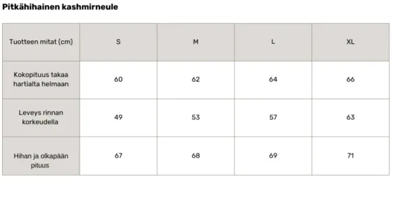 Materiaalina cashmere. Luethan neuleen hoito-ohjeet huolellisesti. Näin saat nauttia neuleestasi pitkään!