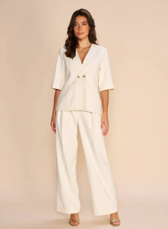 Mos Moshin kevään uutta: klassiset suorat housut leveillä pitkillä lahkeilla. Edessä vetoketju. Vyölenkit. Ihanat housut arkeen ja juhlaan. Yhdistä korkkareiden ja bleiserin kanssa töihin tai juhlaan. Tennareille astetta arkisempi look! <3