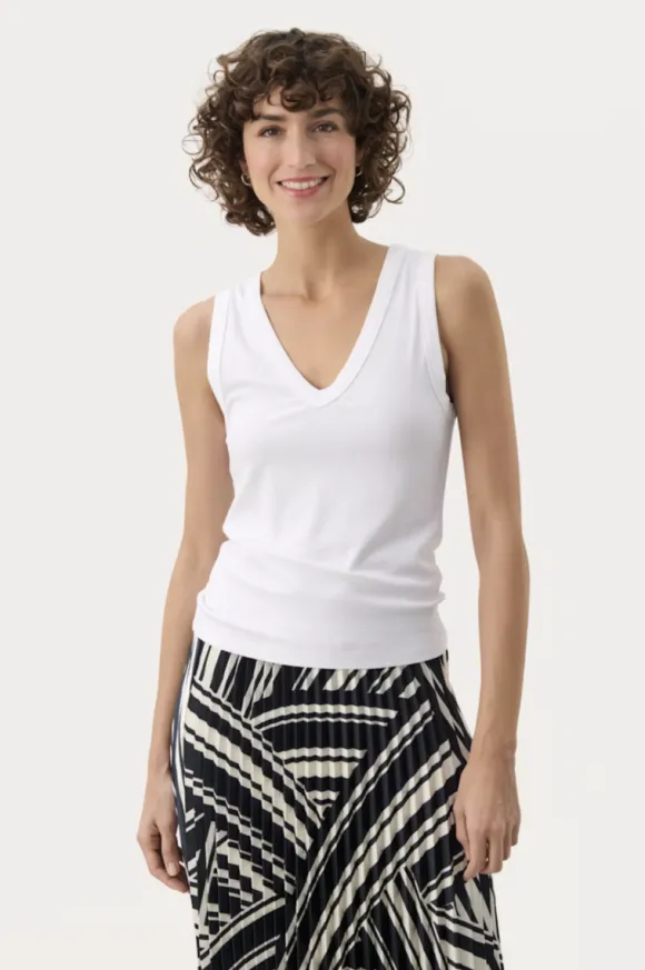 Part Twon kevään uutta: klassinen toppi v-kaula-aukolla. Miellyttävää ribbineulosta. Käytä neuleiden tai bleisereiden alla tai kesällä sellaisenaan.