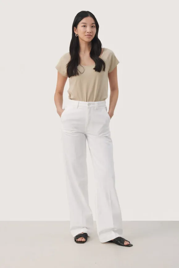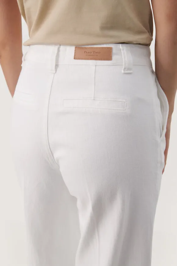 Klassiset valkoiset puuvillahousut kesään! Nämä farkkumaiset housut sopivat monenlaiseen kokonaisuuteen. Tennareiden kanssa rennommin, korkkareiden ja bleiserin kanssa siistimmin!