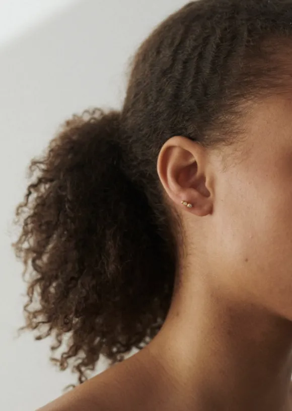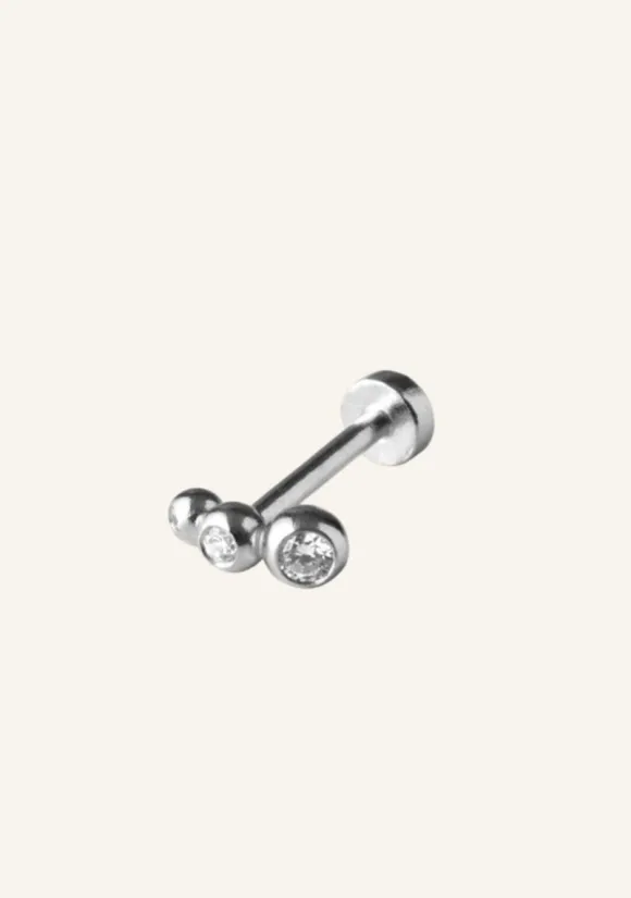 The Sirius Helix Piercing is a helix piercing that sits in the upper part of the ear. The piercing and its placement on the ear is called a helix. The beautiful Sirius Helix Piercing has three white zirconia stones, that catch the light and give the helix piercing an elegant look. The piercing is memorizing on its own but can easily be combined with other pieces of your favourite jewellery.