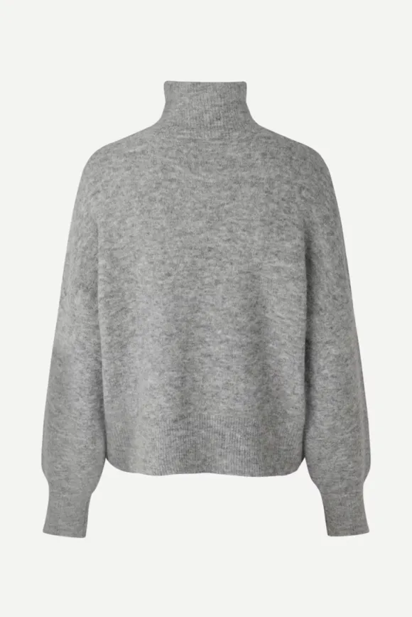 Samsoe&Samsoen klassinen pooloneule mukavan pehmeää, ohutta neulosta. Yhdistä hameen tai housujen kanssa päivän tyylin mukaan. Materiaalina villan, alpakan ja kierrätetyn polyesterin sekoite.