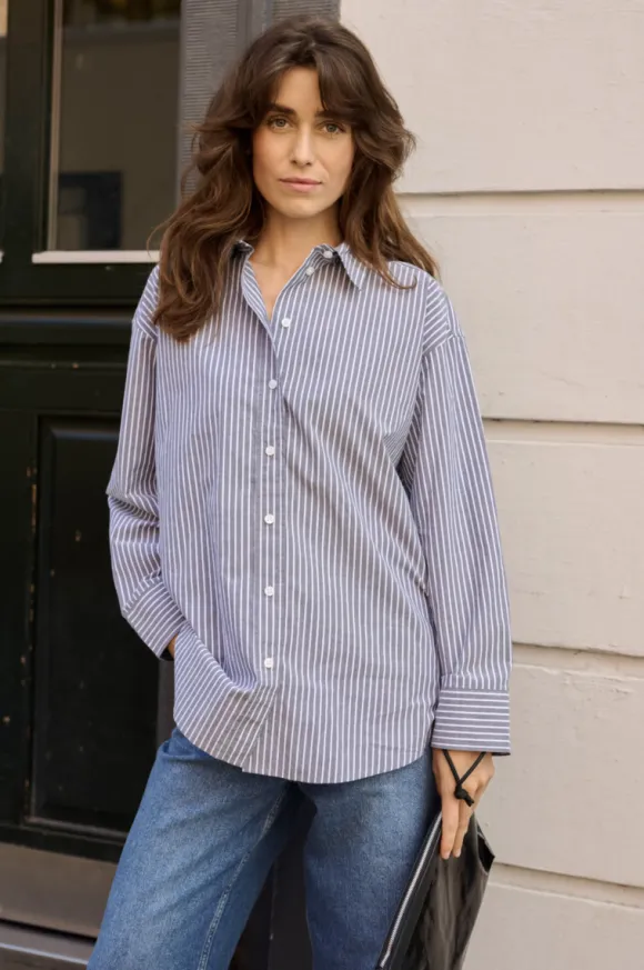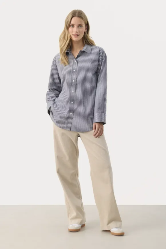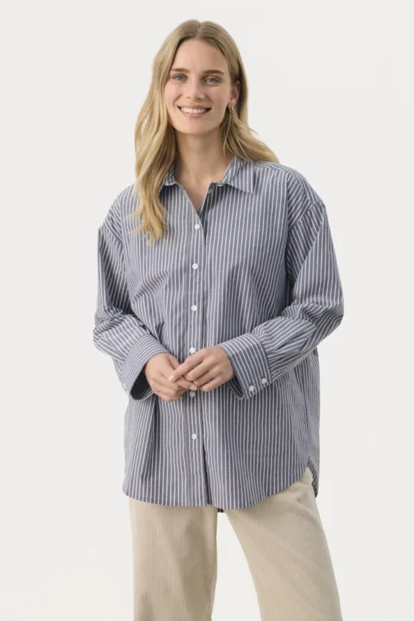 Part Twon klassinen paitapusero kivalla raitakuosilla. Suora malli. Materiaalina luomupuuvilla.