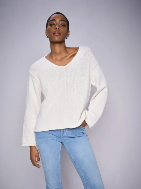 Mos Moshin uutuus: luomupuuvillasta valmistettu mukava Bine neule, jossa yksityiskohtina rullatut hihansuut ja helma.
