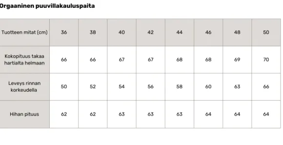 | Size | 34, 36, 38, 40, 42, 44, 46, 48, 50 |