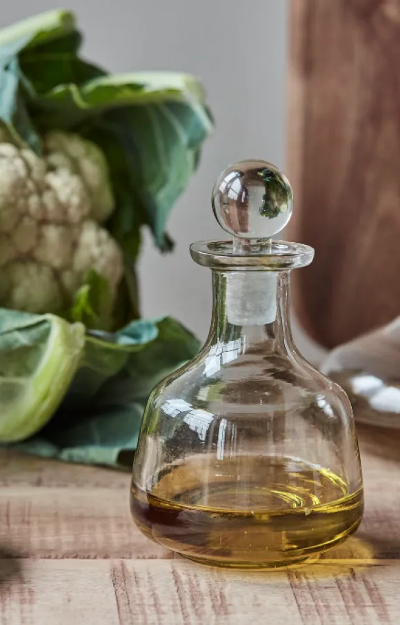 House Doctorin kaunis, käsintehty lasikarahvi öljylle, viinietikalle tai salaatinkastikkeelle. Käytä keittiössä ruuanlaiton yhteydessä tai kata pöytään, jolloin kukin saa itse maustaa annoksensa.