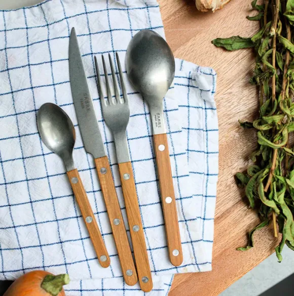 Ranskalaisen Sabren kaunis aterinsarja tiikkivarrella. Ihana ajaton malli kauniisiin kattauksiin!